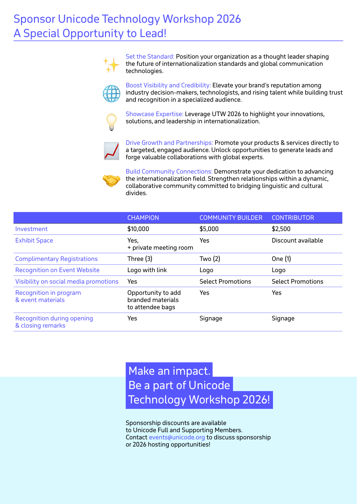 Building on the success of the Unicode Technology Workshops held from 2023 to 2025 in the heart of Silicon Valley, California, UTW 2026 brings that same spirit of openness, innovation, and in-person collaboration to the heart of Europe’s design and research ecosystem.