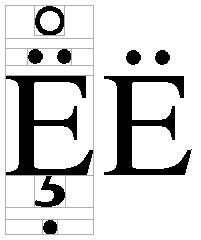 A comparison of that result with the precomposed glyph for capital E with dieresis in the same font is shown below: