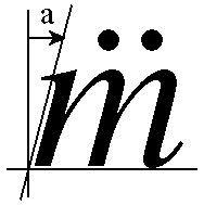 As a trivial example, consider placing an umlaut over the Latin lower-case "m". The italic angle of the font is "alpha" degrees, and the base of the umlaut is at height b above the baseline. The horizontal adjustment required to visually center the umlaut is length a, as shown in the triangle diagram above.