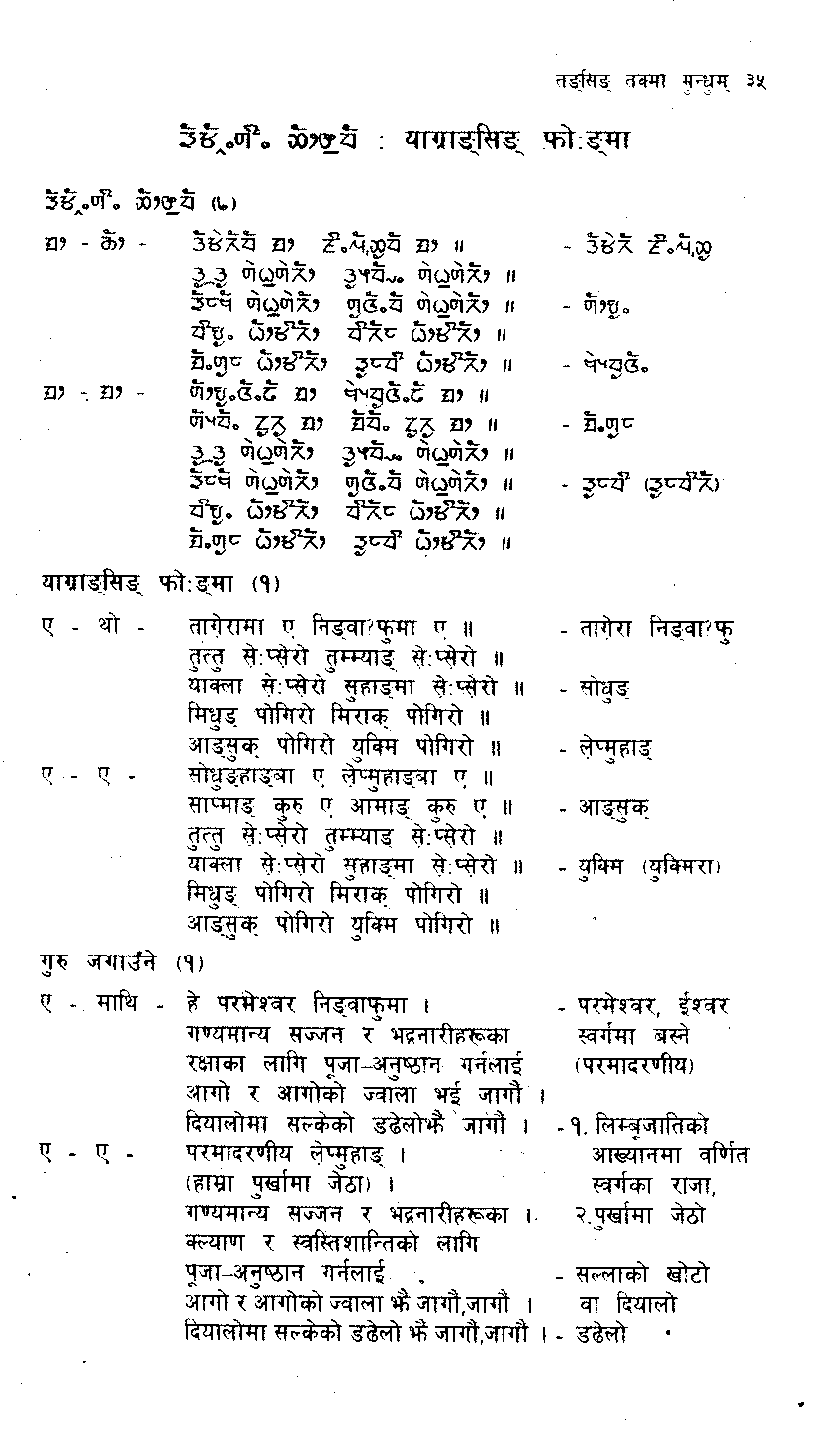 Limbu rituals with translations, notes, and vocabulary. Page 35 (92K) is the first page of annotated