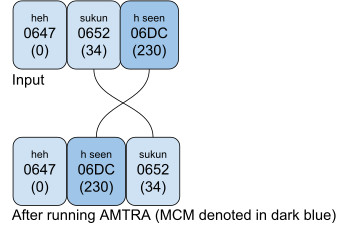 Running AMTRA on the string in Example 2b resulted in an undesired change. It puts a sukun over a seen above. If an orthography needs to put the seen above over the sukun, the text should be encoded as <sukun, CGJ, seen above>.